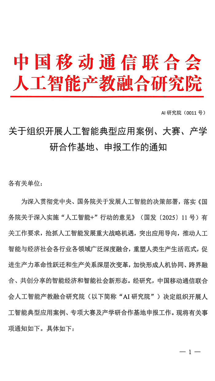 关于组织开展人工智能典型应用案例、大赛、产学研合作基地、申报工作的通知