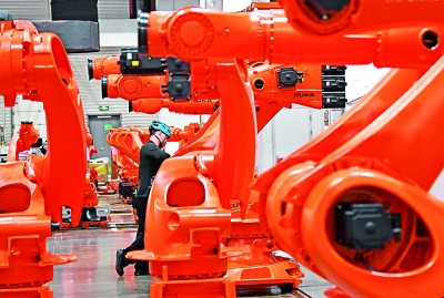 广东佛山某科技园的工业机器人产线车间。新华社发