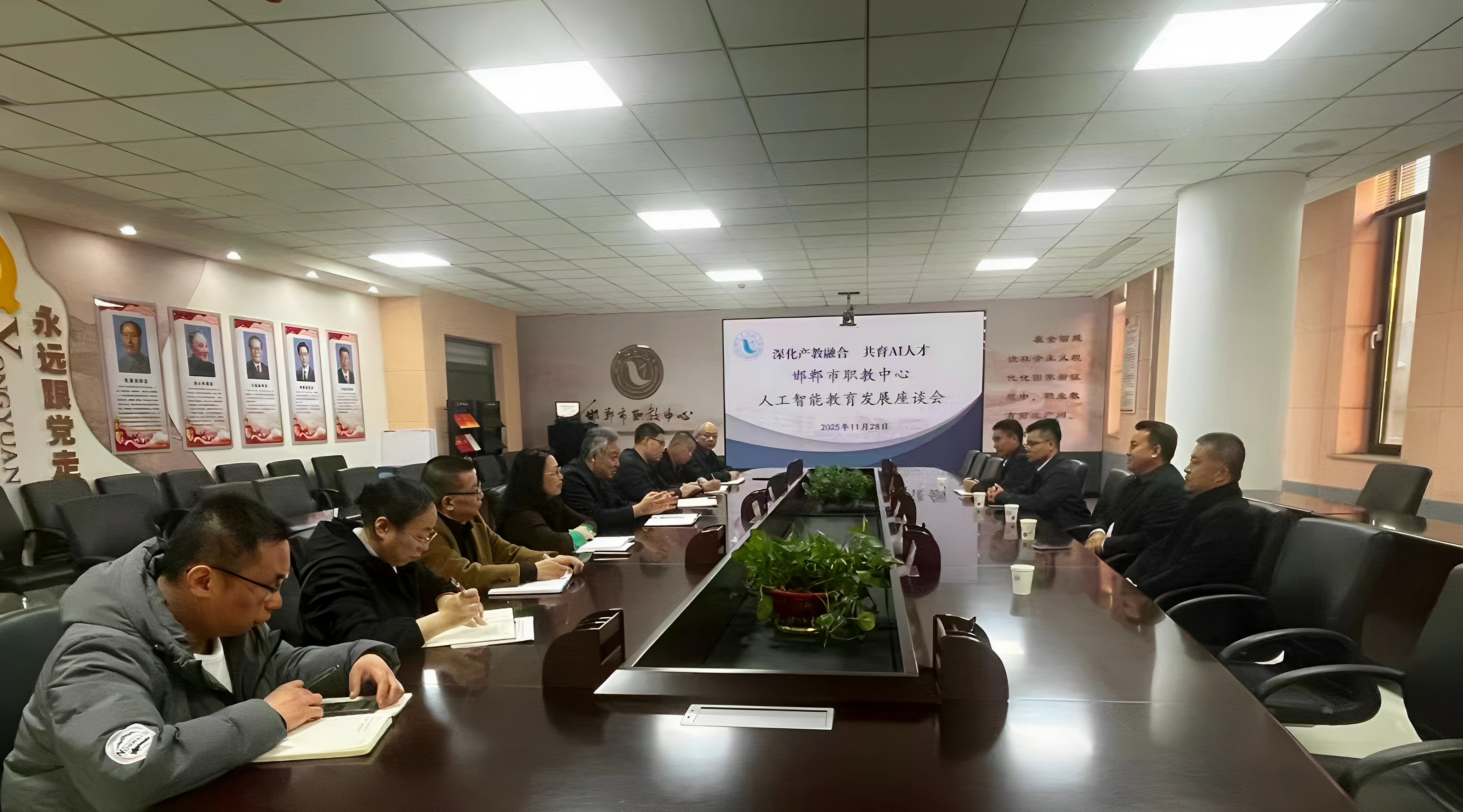 座谈会在职教中心会议室举行。中国人工智能产教融合研究院秘书长聂韵、副秘书长王少峰等专家,与邯郸市职教中心校长及相关负责人就人工智能时代职业教育的发展路径进行了务实而富有前瞻性的交流。